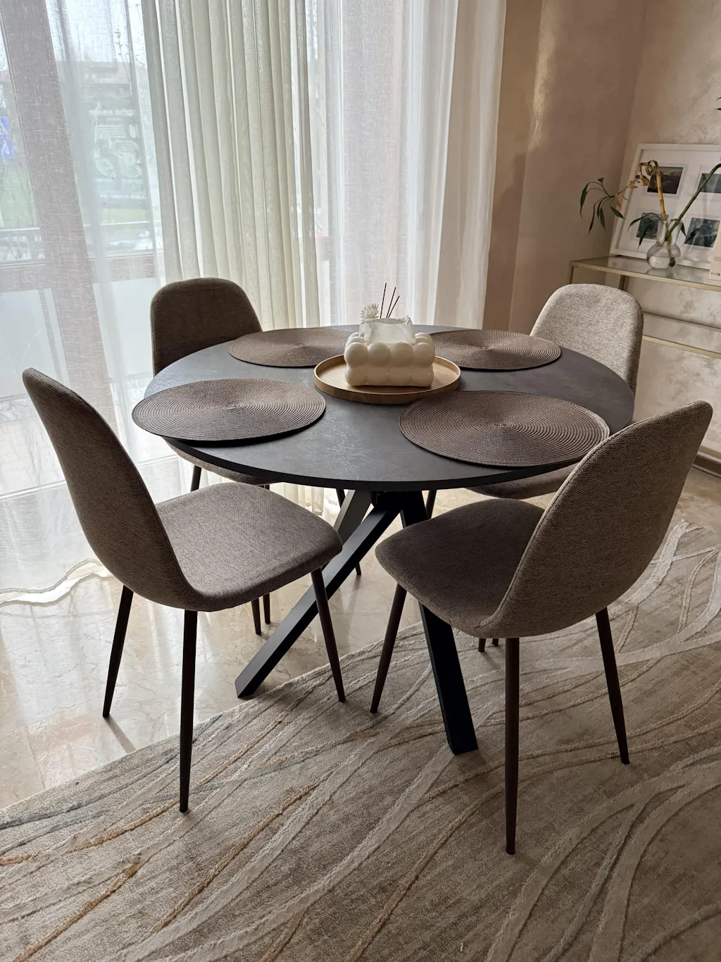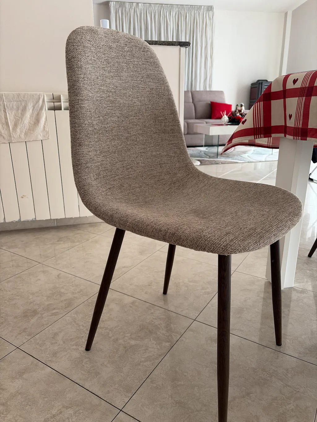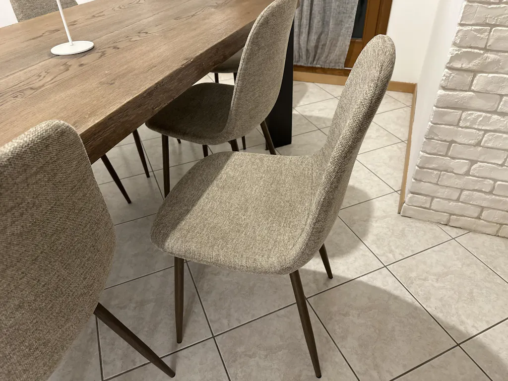 Qui sotto trovi i campioni di tessuto per Anna Sedia da pranzo - tessuto sabbia con gambe in rovere fumé